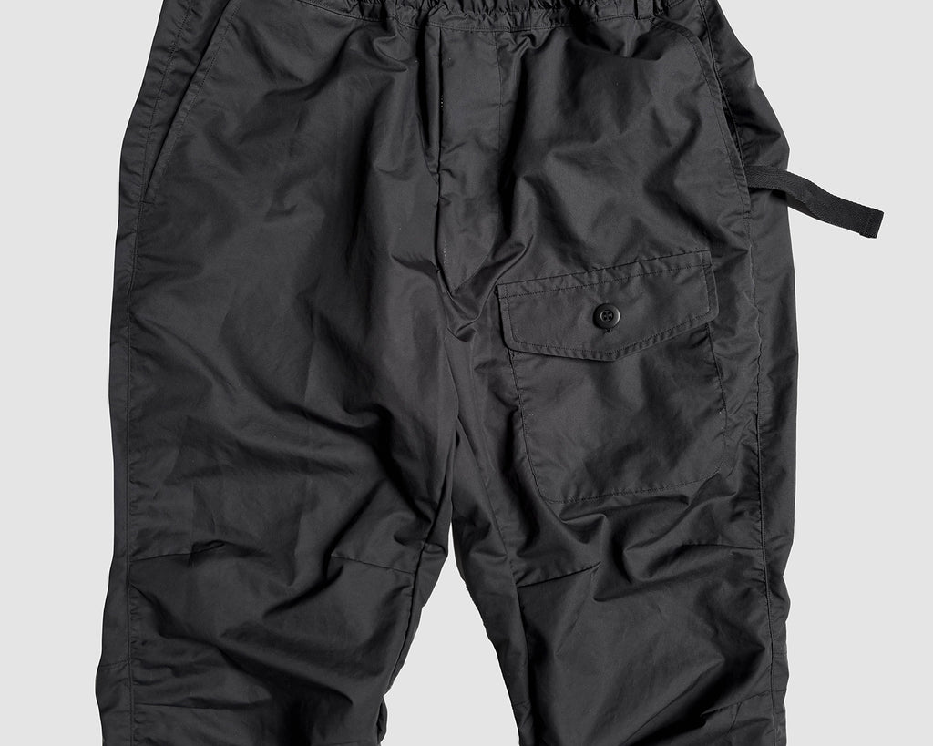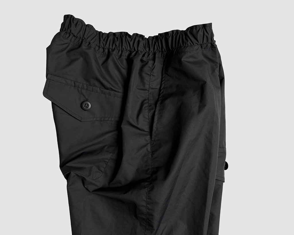 ・ポリエステル機能性素材 : 適度な張り感があり、ナチュラルな雰囲気を演出するTSY加工を施し、最終的に強撥水加工を施しています。内側は汗がまとわり付かないように仕上げています。膝部分は立体裁断で前振りのシルエットになります。