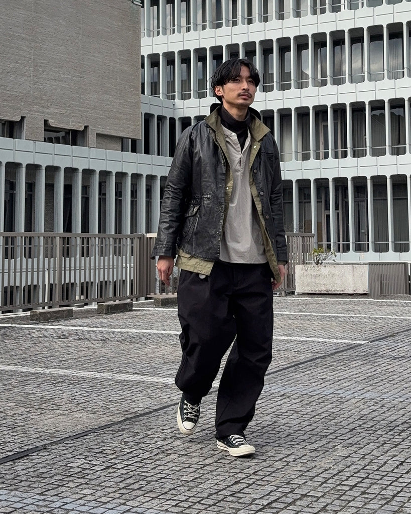 モデル着用分は同じサイズ感の別品番タートルで赤はLサイズ黒はMサイズ