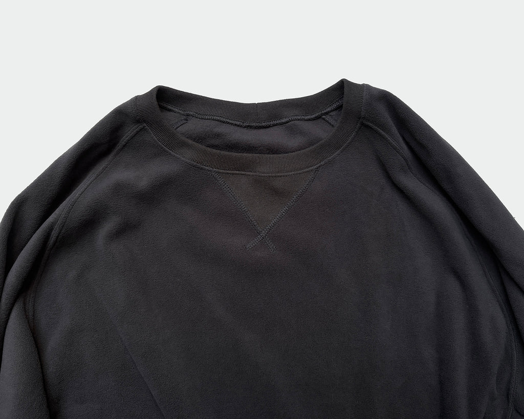 素材はアウトドアシーンでも度々登場するポーラテックシリーズの軽くて嵩張らず暖かい機能素材ミクロフリースを使用。中肉程度の厚みですが相当暖かい素材になります。ロンT代わりのインナー使用を目的としています。